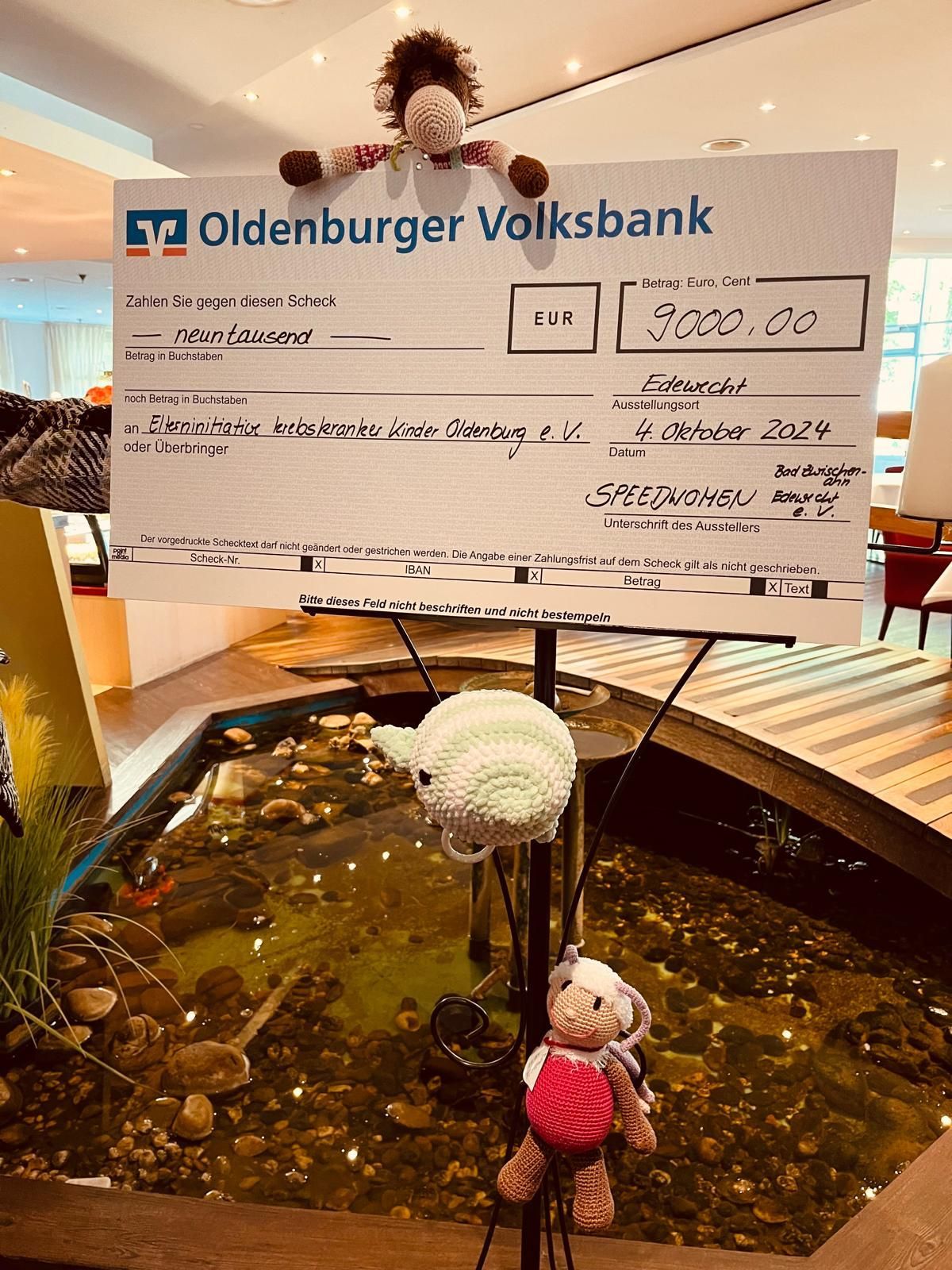 Die Damen unseres Fördervereins waren wieder fleißig auf den Märkten im Ammerland und Oldenburger Land unterwegs und haben die mittlerweile bekannten Häckeltiere sowie viele andere Handarbeiten für den guten Zweck verkauft. Bei Kaffee und Kuchen, einem Bericht von der Elterninitiative und vor allem guter Stimmung wurde nun der symbolische Scheck über 9.000 Euro übergeben. Wir freuen uns sehr und finden Euch einfach spitze!